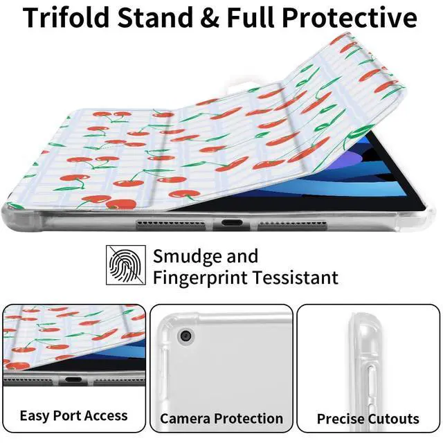 Full Protection & Trifold Stand: Hardshell back cover with flexible TPU bumper protects your iPad from shocks, drops and impacts. The triple adjustable stand allows the viewing Angle of the Pad to be adjusted at will for a variety of use cases ^^