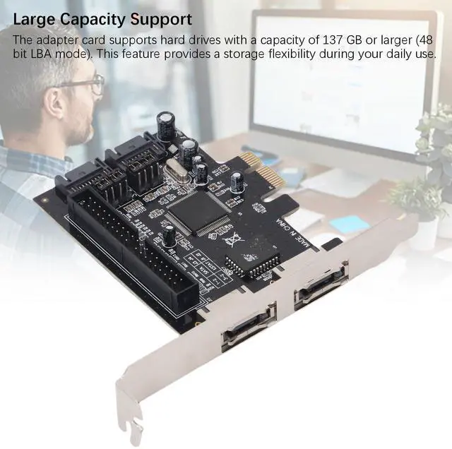^^ LARGE CAPACITY SUPPORT: The adapter card supports hard drives with a capacity of 137 GB or larger (48 bit LBA mode). This feature provides a storage flexibility during your daily use.