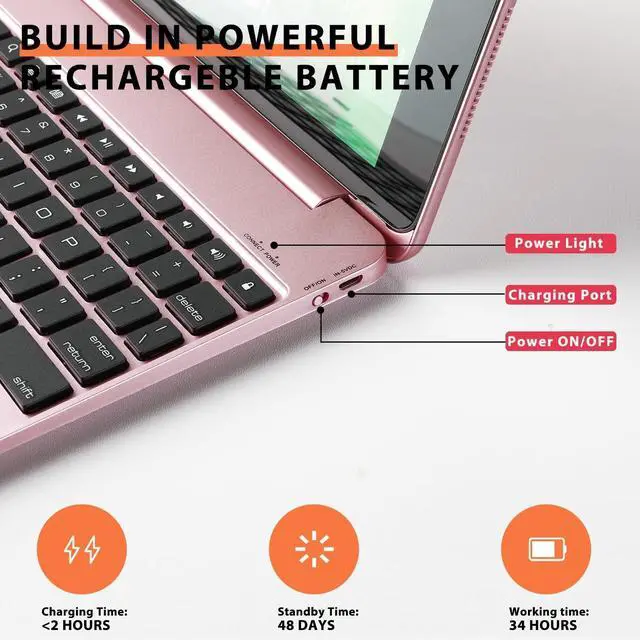 ^^ Stable Wireless Connection & Long Life BatteryThis 9.7 inch iPad case with Bluetooth keyboard provides a fast and stable wireless connection, and the wireless connection is very easy to operate. With over 30+ hours of use, 36+ days in stand-by and a charging time of only 3-4 hours, this ipad 9.7 inch keyboard is a thoughtful gift for yourself or your friends.