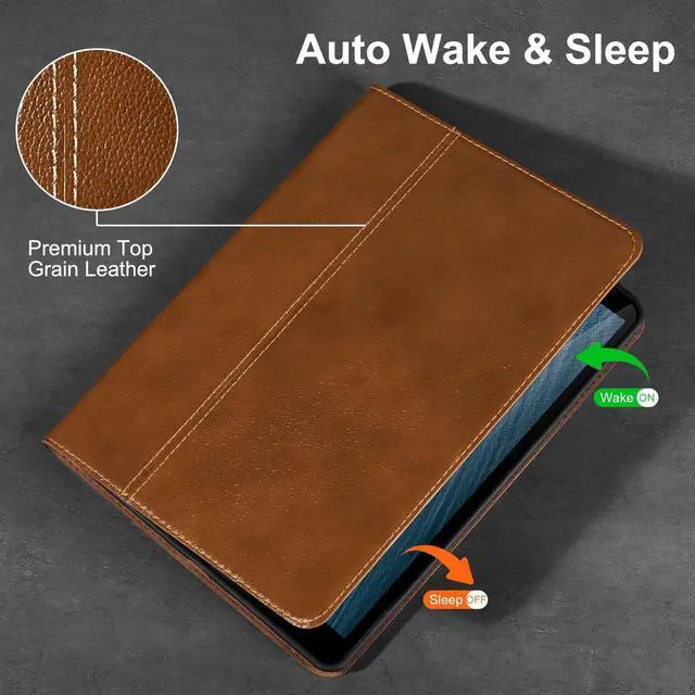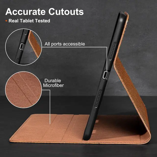• [MATERIAL&CRAFT] - Exterior is genuine leather protecting camera and tablet body with inner super-fibre lining protecting screen and TPU full package soft inner shell. Full access to all features (Cameras, Speaker, Ports and Buttons); each cutout is tested with relevant tablet before package to make sure working perfectly