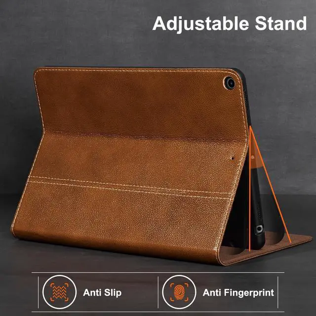 Gexmil Leather Case for iPad 10.2 Inch, 9th/8th/7th Gen 2021/2020/2019,Premium Cowhide Folio Cover with Pencil Holder, Auto Wake/Sleep,Adjustable Stand, Anti Fingerprint,Yellow Brown