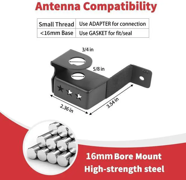 Usage: Driver Side, for 2023-2026+ Chevrolet Colorado & GMC-Canyon, CB Radio Antenna Mount, Front Door CB & Whip Bracket, Antenna Mast Mount, Metal.