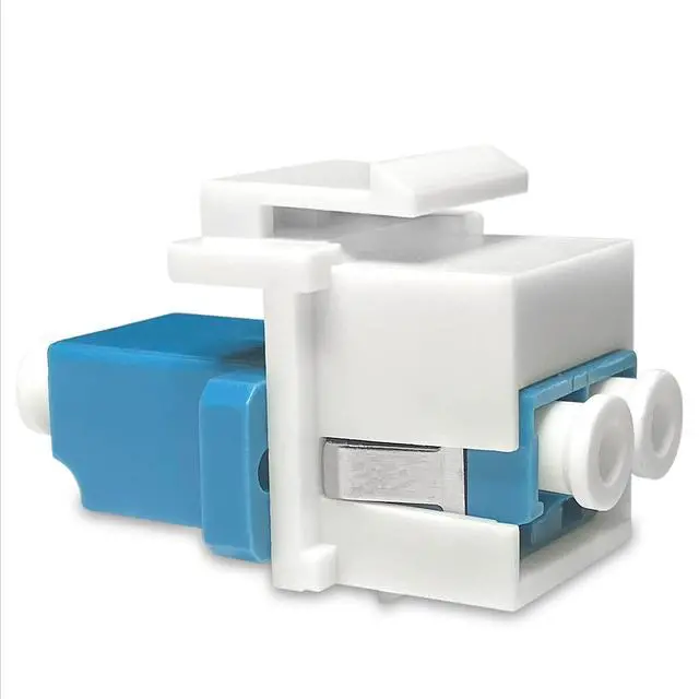 LC to LC Simplex Keystone Jack Insert provides a simple way to connect fiber patch cords with LC connectors. Quickly connect LC fiber cords at a patch panel or work station outlet when moving or changing locations. These keystone inserts are compatible with wall plates, patch panels, and surface mount boxes with standard-sized keystone openings