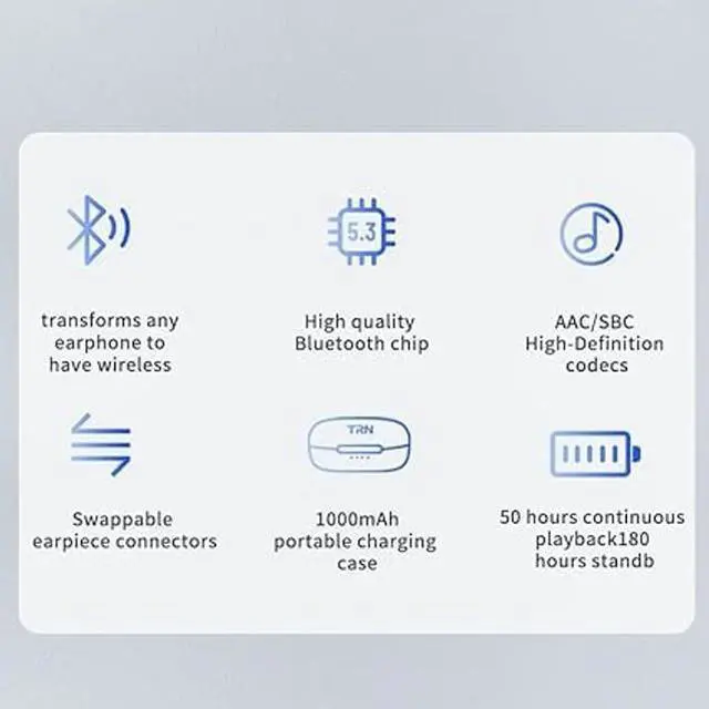 Paoduct modelBT20 ProBluetooth encodingAAC/SBCWeight8gper earpieceEffective signal range15mBluetooth formatBluetooth 5.3C harging portType-CBluetooth chipsetHigh quality Bluetooth chipBattery power capacity80mAhper earpiece)Charging case power capacity1000mAhStandby time180HPlayback timecharging case+earpieces50 hours13 hours when using both earpieces onlyCharing timemodules/charing case): 1.5 -2H/ 2.5 -3H