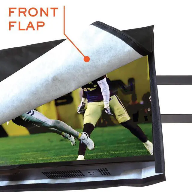 WEATHERPROOF, HIGH QUALITY MATERIAL This Outdoor TV cover is made of heavy-duty 600D Oxford material with polyester backing and soft interior. The TV cover will keep your TV safe from any weather including rain, dust, sand, snow and extend the life of your outdoor TV. ^^ WRAP-AROUND COVERAGE - Provide 360 degrees protection for your TV outside. The fasteners are hidden to prevent water intrusion and completely seal your TV. ^^ DIMENSIONS OF 52-55