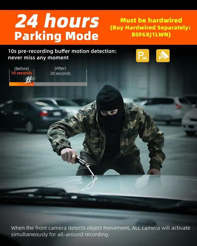 Note: Parking mode requires separate hardwired kit (ASIN: B0F6XJ1LWN) for 24-hour monitoring. ^^ 4 IR Sony STARVIS 2 Night Vision for this camera for car: Powered by Sony STARVIS 2 sensor and 4 cabin-dedicated IR lights, the F 1.55 aperture with WDR technology in this dash cam delivers razor-sharp footage in pitch-black or backlit scenes, enabling 24/7 professional-grade monitoring of passengers, pets, and road details a key advantage for any reliable car camera dash cam front and rear. ^^ Support 5G WiFi & GPS Tracking for the 4 channel dash cam: Preview video and download recordings via 5G WiFi on our app with this advanced dash cam front and rear. Built-in GPS logs real-time speed, route, and coordinates, traceable on Google Maps for authoritative accident evidence essential for a trustworthy camera for car. Share them with your friends, insurance companies, etc in real time. ^^ 24/7 4-Way Parking Protection for the dash cam: When the front camera of this car camera dash cam front and rear detects motion of people or objects, all cameras activate instantly, recording 10 seconds before and 20 seconds after the event with 360 coverage. And the collision detection offers low/medium/high 3 sensitivity levels, automatically starting recording and locking accident videos upon impact a standout feature of this 4 channel dash cam. ^^ 512GB Storage & Rotatable Lenses for the camera for car: Adjust all lenses of this dash cam front and rear for custom framing. This 4 channel dash cam supports 512GB microSD cards (sold separately). We provide you with a 128 GB SD card, so you can use the dash cam immediately upon receipt without needing to purchase an SD card separately. ^^ Smart Voice Control for this car camera dash cam front and rear: This intuitive dash cam supports multiple languages and allows simple voice commands like taking photos or turning on/off, so you can keep your eyes on the road without distraction a must-have feature for any high-quality camera for car.