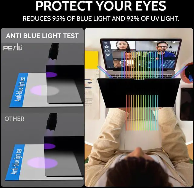 In addition, Four-way anti-peeping design, 360-degree anti-peeping without blind spots.. By getting the Peslv privacy screen MacBook pro 14 inches, you can ensure that your computer data privacy is not peeked. ^^ PROTECT SCREEN ALSO EYESThe high-quality materials imported from Japan and the process imported from Germany have greatly improved the performance of the magnetic MacBook Pro 14inch privacy screen. High-quality filter layer that can reduce 95% of blue light and 92% of UV light. Matte surface, anti-glare, effectively intercepts 95% of the reflected light. Anti-scratch layer to avoid scratches from daily use.