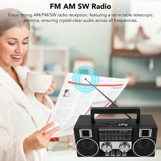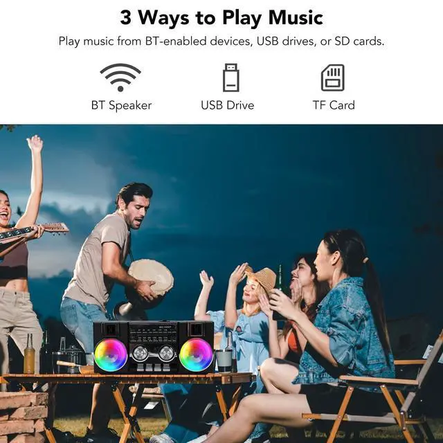 4-in-1 VersatilityThis Bluetooth speaker offers incredible flexibility with four integrated functions: enjoy your favorite FM radio stations, stream music wirelessly via Bluetooth, play audio from a USB drive, or use a memory card (not included) for expanded storage. ^^ Powerful Sound PerformancePowered by dual 5W drivers, the speaker delivers impressive volume and rich stereo sound with immersive left-right separation, creating a dynamic audio experience that fills any space. ^^ Enhanced FM ReceptionExperience crystal-clear FM radio with superior signal stability, ensuring uninterrupted listening to your favorite stations in exceptional sound quality. ^^ Long-Lasting EntertainmentEnjoy up to 8 hours of continuous playback on a single charge, with fast and convenient recharging via USB C. Stay entertained all day without worrying about battery life. ^^ Great PortabilityLightweight, compact, and designed for on-the-go use, this speaker is great for outdoor activities, indoor relaxation, or everyday convenience. Take your favorite audiobooks, podcasts, and FM stations with youwhether you're in the garden, bathroom, or park.
