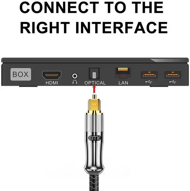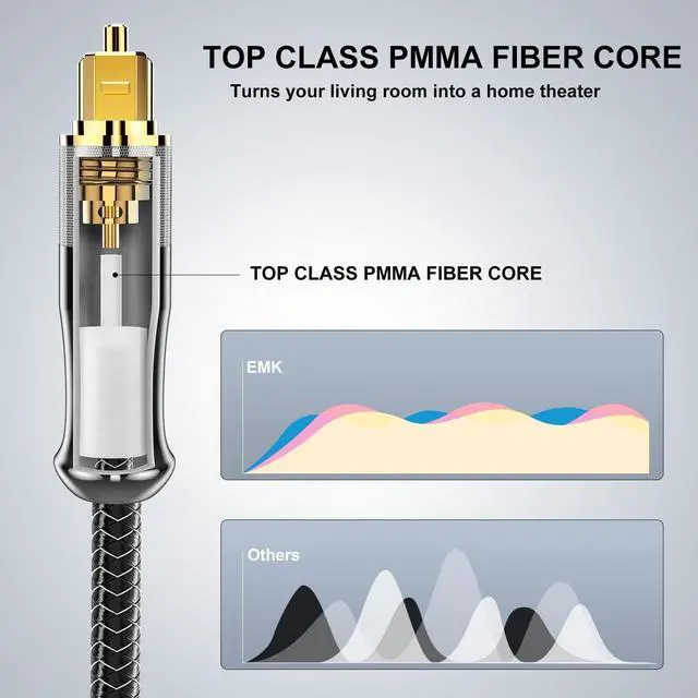 EMK Premium Optical Audio Cable Perfect for Soundbar to TV & Home TheaterCrystal-Clear Digital Audio via Toslink Optical CableUpgrade your audio setup with EMKs digital audio optical cable, engineered for flawless sound transmission between your soundbar and TV. This Toslink optical cable eliminates interference for pristine Dolby Digital and DTS surround sound. Why This Optical