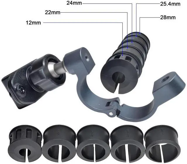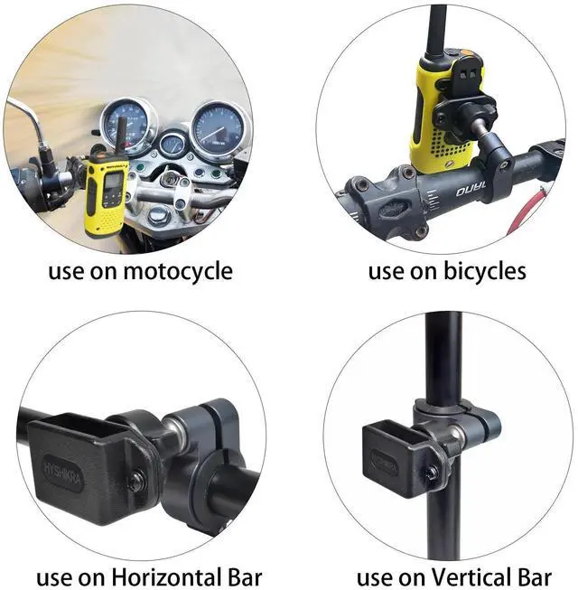 ^^ Rubber Inserts: The bracket comes with non-slip rubber inserts with a wider range of sizes(12mm, 22mm, 24mm, 25.4 mm, 28mm); help dampen vibrations and protect the installation palce from being scraped. ^^ Compatible with Baofeng Kenwood Yaesu Motorola Talkabout Retevis and most of two way radio with back clip ^^ Suitable for motorcycles, bicycles, electric bikes and any horizontal or vertical bars with the same diameter ^^