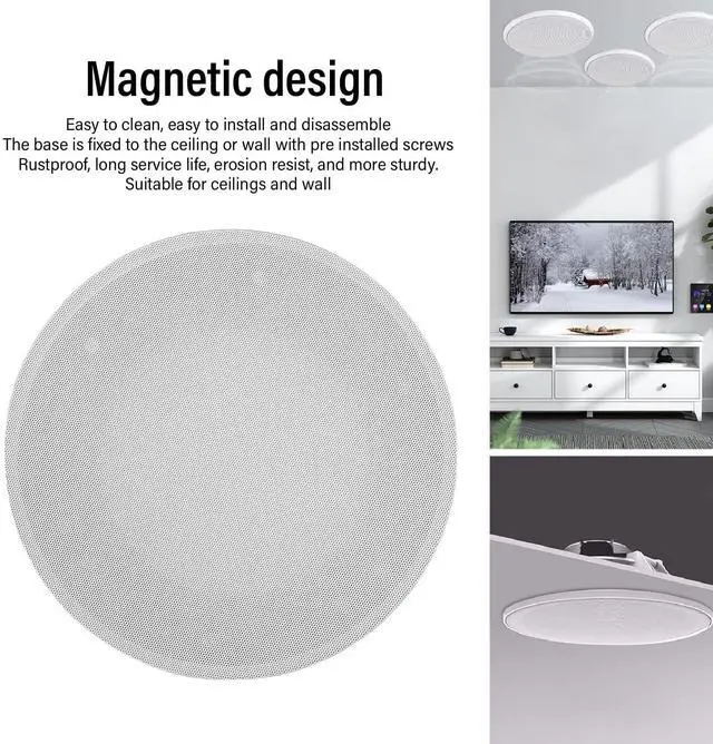 Easy Access: The magnetic design of the mounting base allows the speaker cover to be securely attached, making cleaning and maintenance effortless. With pre installed screws to attach the base to ceilings or wall, installation and removal have never been easier. ^^ Metal Construction with