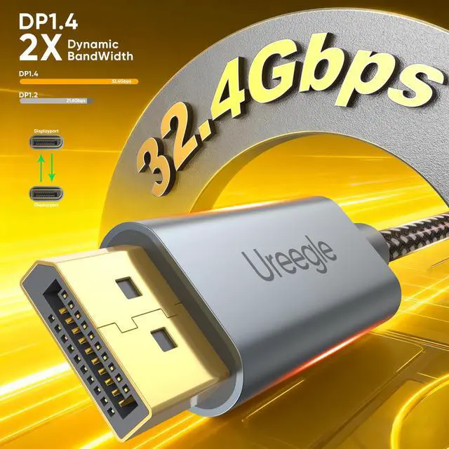 Material Design: Features multi-layer shielding and 24K gold-plated connectors. This construction maintains optimal signal transmission quality while delivering exceptional corrosion and wear resistance. It effectively prevents black screens, flickering, and disconnections while significantly enhancing heat dissipation for maximized transmission efficiency. Ureegle DisplayPort cables utilize a high-strength aluminum alloy housing, with the connecting cable employing a braided design. This ensures maximum service life ^^