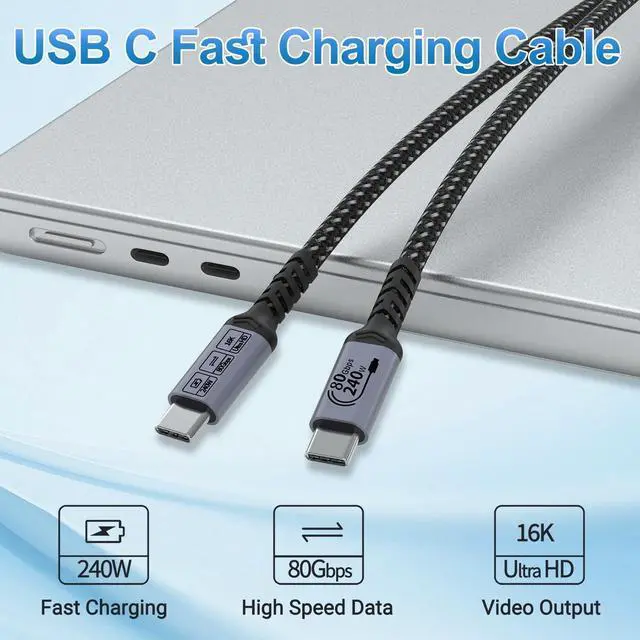 ^^ [Wide Compatibility]: The USB 4 cable is compatible with thunderbolt 5, thunderbolt 4, thunderbolt 3 electronics, iPhone 16/16 Pro/16 Plus/16 Pro Max, iPhone 15/15Plus/15Pro/ Max, MacBook Pro, iPad Pro, Samsung Galaxy S23, Pixel, LG, M1, M2, M3, SSDs, Type-C laptops, PCs, speakers, tablets, computers, cellulars, phones, video game consoles, monitors, hubs, docks, docking stations, SSD, Harddisk, Powerpoint, eGPU devices and other USB-C plug devices ^^ [ 2M/ 6.6FT Perfect