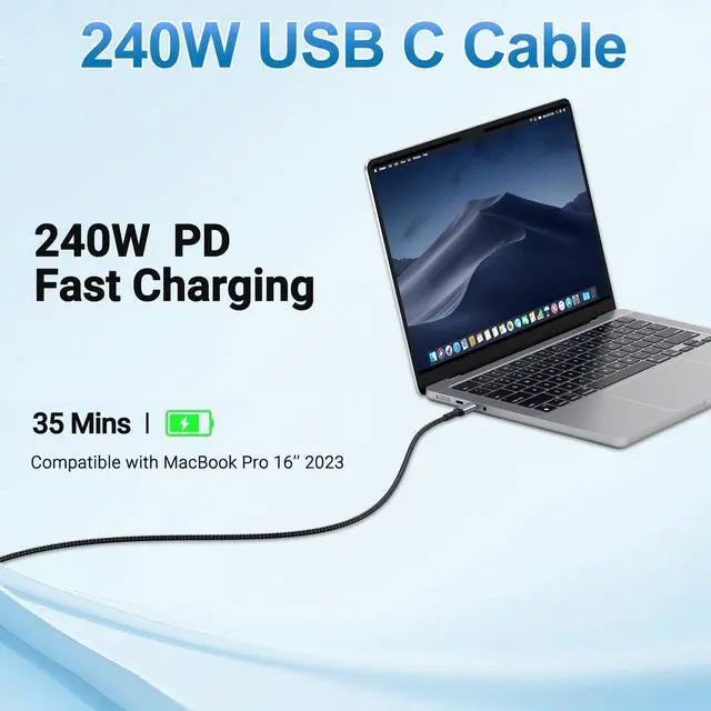 Charging ]: SUMPK 240W USB C Cable could charge your devices quickly with a 240W/48V/5A power delivery. And it is backward with 200W /140W / 100W / 60W / 18W. The cable is built-in E-marker high technology chip for safety, stability and battery protection. ^^ [Compatible with