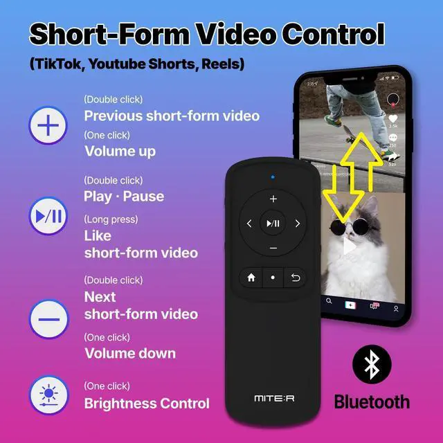 No need to touch the screen to turn the next last video, volume -+, Pause Play, and send a like. Free your hands. you can watch TikTok/YouTube videos comfortably while lying on the sofa. (Note for iOS Enable AssistiveTouch under Settings > Accessibility > Touch. for Android ONE UI 7.0 above Settings > General > Mouse&Trackpad > Pointer Speed and Adjust the speed using the Slow-Fast slider) (On TikTok Shorts Reels, double click the volume key button to go next video, double click the play button to pause, long press play button to send a like) ^^ IMPORTANT NOTICE A technical issue in iPad OS 26.3 (Released Feb 11, 2026) prevents remote page-turning functionality in the Kindle App and also other issues.