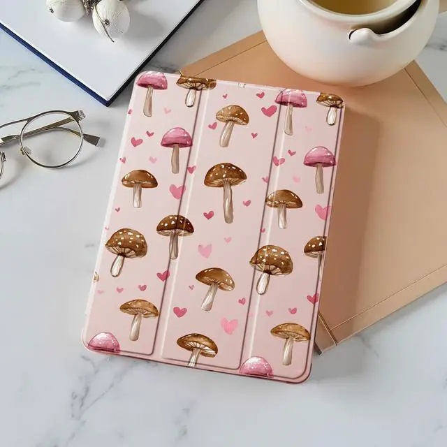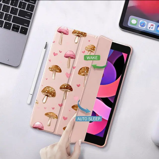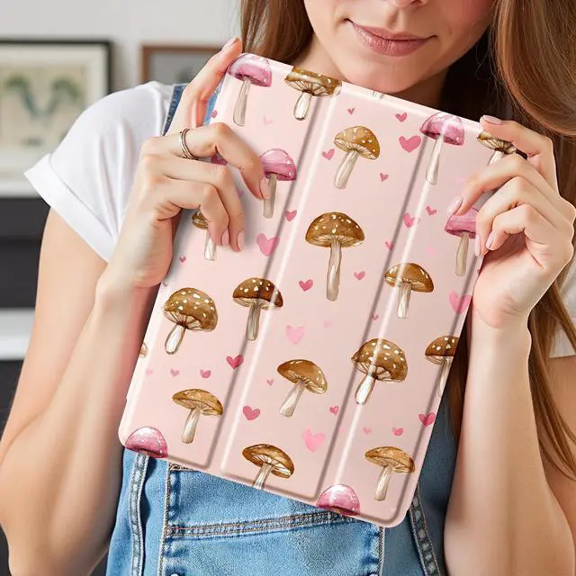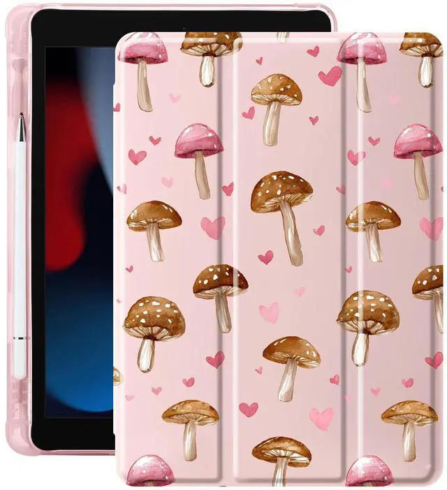Idocolors Case for iPad 11 inch (A16 Chip) 2025 Generation 11th / iPad 10.9 inch 2022 10th Gen, Built-in Pencil Holder with Soft TPU Shockproof Back Shell Auto Wake/Sleep, Mushroom-Pink