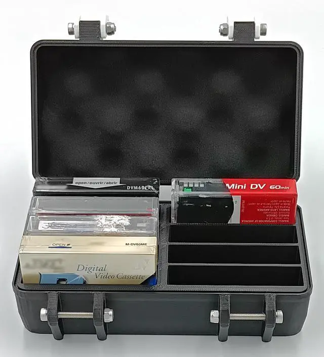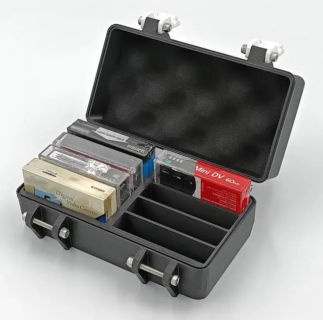 DescriptionIdeal for your mini DV cassettes, this case offers unparalleled protection and storage for your valuable cassettes, all while maintaining a stylish and practical design. It seamlessly combines functionality with a sleek appearance. Please note, cassettes featured in the images are for illustrative purposes only and are NOT INCLUDED with the case. This case is specifically tailored cassettes in their jewel cases. The dimensions are (depth, width, height) 4.37" (111 mm) x 6.54" (166 mm) x 2.73" ( 69.4 mm) and it weighs 8.47 oz (240 g).