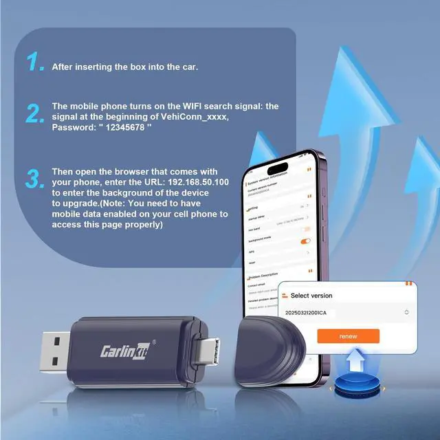 Dual USB-C/A Port: Designed to fit most cars with factory wired CarPlay/Android Auto (2016+ models). The innovative integrated USB-A and USB-C connector allows you to plug into either port without needing an extra adapter, ensuring a perfect fit for both older and newer vehicle models ^^ Seamless Auto-Connect & Future-Proof OTA Updates: After the initial 8-second setup, the device connects automatically to your phone every time you start your car. Plus, it supports OTA (Over-The-Air) updates, ensuring your device stays up-to-date with the latest features and system optimizations for years to come ^^