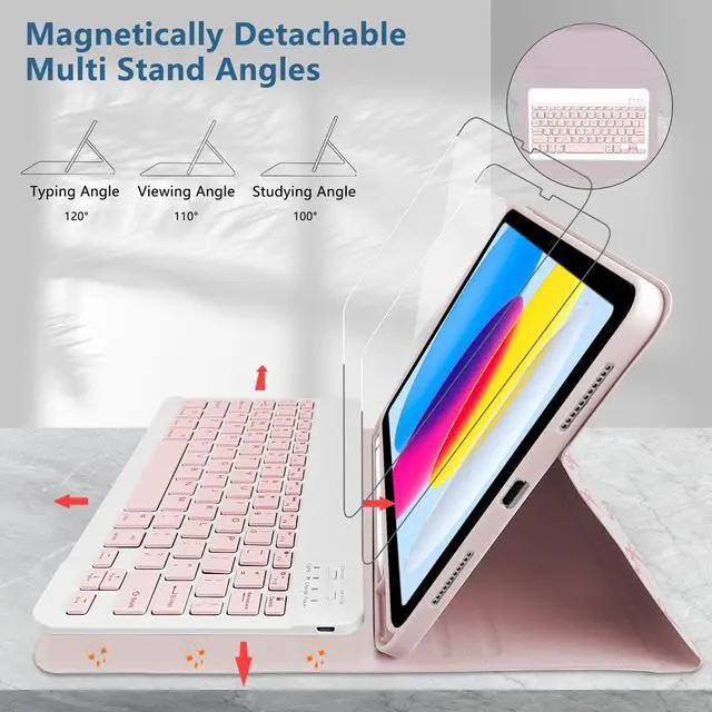 Generation (Model Number: A2696/A2757/A2777). for iPad 11th (A16) generation 11-inch 2025 (ModelA3354, A3355, A3356), Please check the model number on the back of your for iPad before purchasing ^^ [Pencil Holder and Multi-angle Adjustable Support] This 10th generation for iPad tablet case has a built-in Pencil holder that makes it easy to carry Pencil and take it out. The for iPad case has three grooves that can be used at three angles, and is made of non-slip material that supports the for iPad to stand up ^^ [Rechargeable Keyboard] The for iPad Bluetooth keyboard has a built-in battery with high stability, so you don't need to replace the battery. You can charge the keyboard using the charging cable that comes with the keyboard. The keyboard has a Bluetooth acceptance range of 10 meters. If you don't need to use the keyboard, you can remove it and turn it into a regular for iPad case, which makes for a handy experience(Detachable, Rechargeable, Magnetically Absorbent) ^^ [Automatic Sleep/Wake] This for iPad case will automatically put your for iPad to sleep when you close the front cover of the case. Because an iron keyboard may prevent magnets from attracting to each other, remove the keyboard for optimal sleep/wake up ^^ [Include Content] The box contains the for iPad case, 2 Pack 9H Screen Protector, Bluetooth keyboard, keyboard charging cable, and instruction manual.