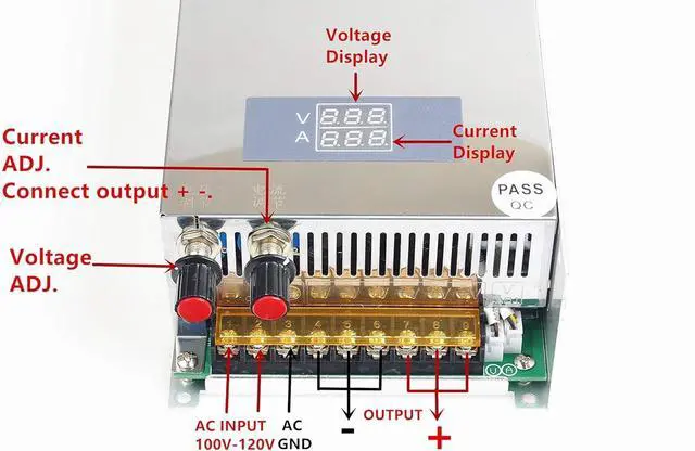 Use and precautions: 1. Before inputting the voltage, make sure that the input voltage is in line with the operating voltage of the power supply. The wrong input voltage will damage the power supply2. Pay attention to positive and negative, do not reverse. 3. Output voltage 0-100% continuously adjustable, with digital output display; output current is not adjustable, limit the highest value; so in the choice, please according to the actual needs. 4. The internal components of the power supply are the best quality, the factory has to undergo a rigorous test, non-general cheap power supply comparable. Can be used for high-end industrial equipment power supply.