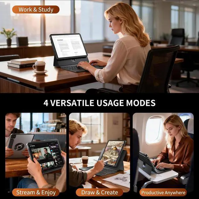 Magnetic Detachable 2-in-1 Design - This iPad keyboard case seamlessly switches between laptop mode for work, typing and video calls, and tablet mode for browsing, drawing and on-the-go use. The strong magnetic detachable transparent back shell also doubles as a standalone protective case for daily use.