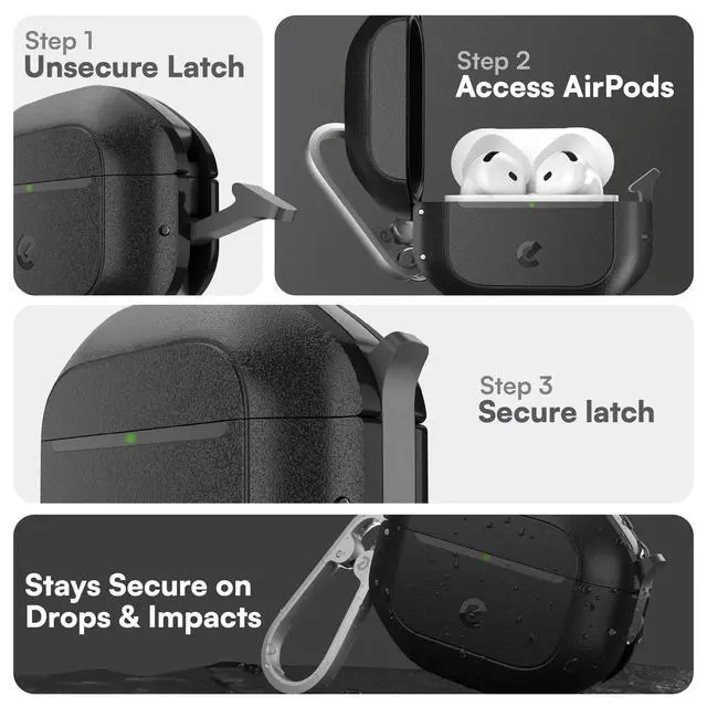 Confidently Secured: Secure Locking System for AirPods 4th Generation Case prevents lid from opening on accidental drops and protects against the elements