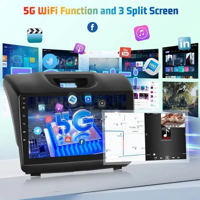 GPS Navigation: For ISUZU D-MAX stereo stay connected on the move with 5G WiFi, enabling rapid downloads and buffer-free streaming of online maps, music, and content. The highly accurate GPS navigation system, powered by up-to-date mapping data, guides you precisely to your destination, even in the most complex road networks. ^^