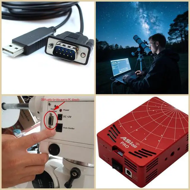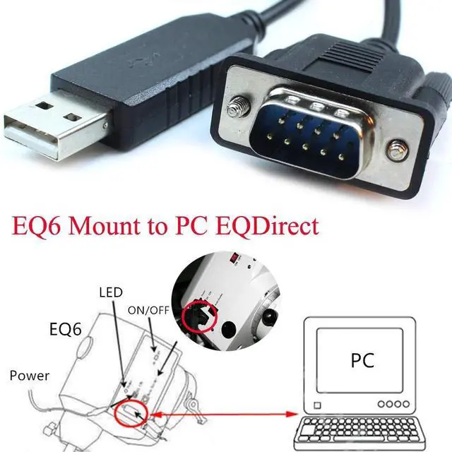 Product Summary1. The USB to DB9 console cable, for connecting PC/Laptop/Asiair Pro and the GOTO mounts, is compatible for Skywatcher/Orion mounts with DB9 female connector like EQ6 and NEQ6 mount, to control Telescope via computer. 2. More Usage. USB to DB9 control cable is compatible for Orion Atlas EQ-G Mount. 3. It is NOT the cable for connecting HC (the Control Handle) and Skywatcher Telescope. 4. Compatible for ASCOM programs like PHD2 and AstroTortilla, for the EQMOD drivers in Windows (ASCOM) or Linux (INDI), for EQMOD, StellariumScope, and Stellarium, for AstroPhoto Tool program (APT).