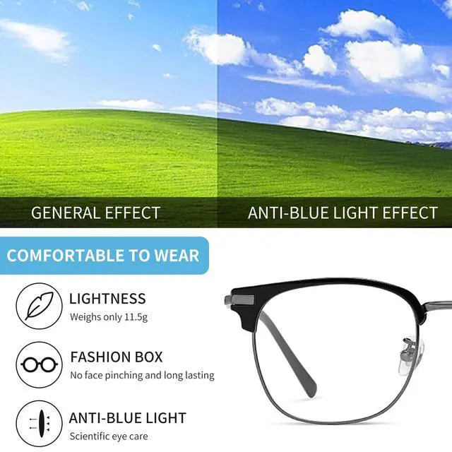 ^^ LIGHTWEIGHT: The lightweight design of these glasses weighs as low as 12g, which makes the anti eyestrain glasses comfortable to wear and the silicone nose pads do not put pressure on the nose, which can relieve the pressure on the bridge of the nose and ensure long-term wearing comfort.