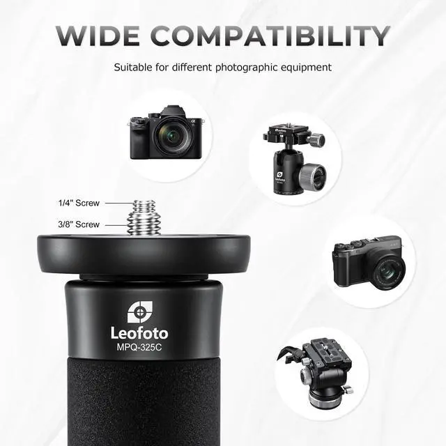 COMPATIBILITY: The 1/4" and 3/8" reversible screws on the convertible mounting stud base allow for the mounting of virtually any camera, video camera, hydraulic head and ball headCARING