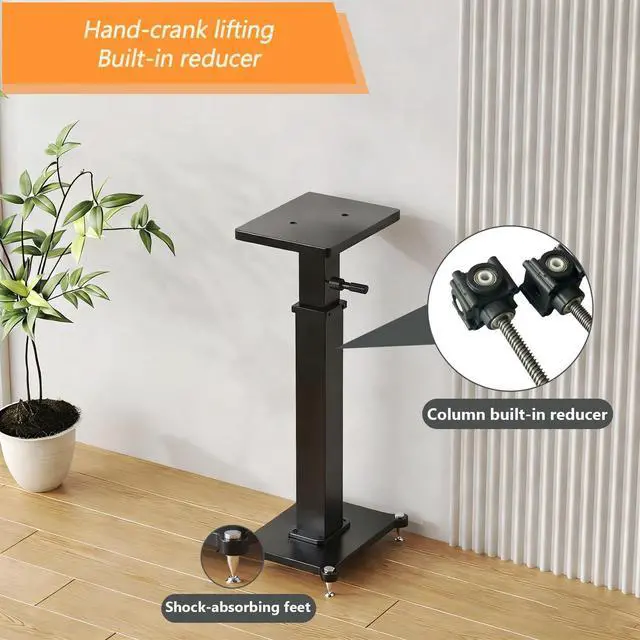 Hand-Crank Height Adjustment -- Studio speaker stands can be adjusted from 18.8 to 26.7 inches by hand cranking, allowing for precise speaker positioning at ear level. This accommodates different usage scenarios, including sitting and standing, optimizing the immersive stereo experience