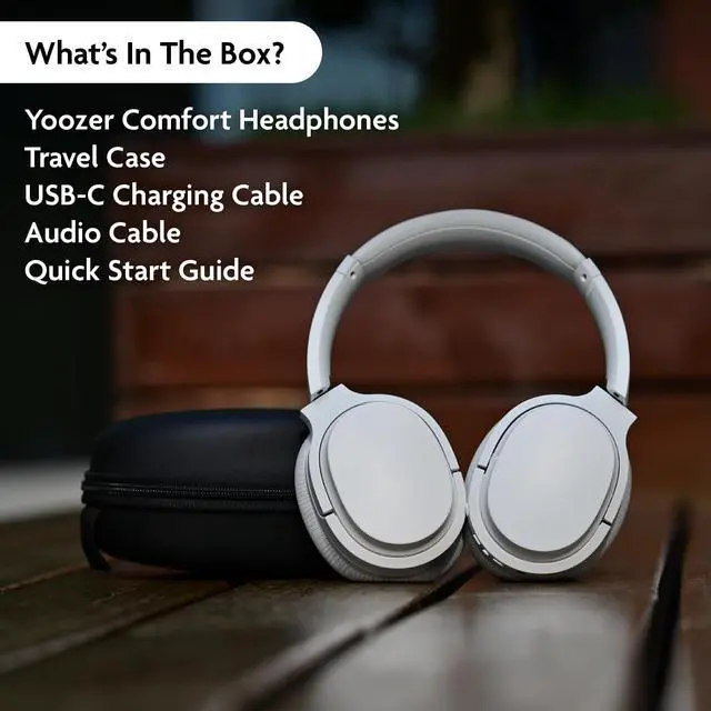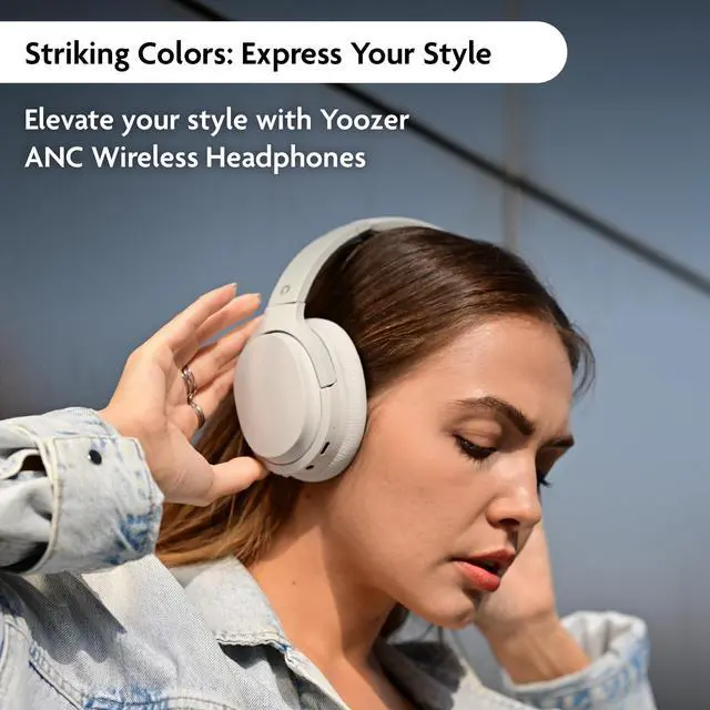 YOOZER Comfort -Premium LightweightWireless Headphones w/Active NoiseCancellation, Bluetooth 5.3, Microphone for CallsAux/Audio Cable Supported, Stereo EarphonesButtons on Headset, White