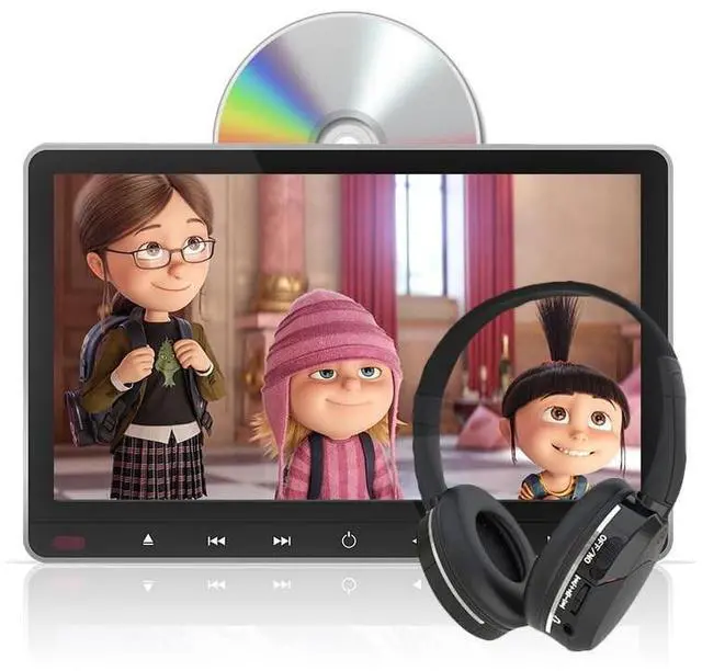 Besides, you also can play different videos simultaneously or via the included AV cable to sync two screens. ^^ Car DVD/CD player&multifunctionalbuilt-in USB port, SD port, IR Transmitter, FM Transmitter, Speaker, HDMI Input Port, IR headset port. AV input and outputCan achieve two devices on the same screenThe video can support up to 1080PFull format support for videos and images ^^ Easy to Install & Stereo SpeakersThe travel DVD player for car comes with a mounting bracket, makes you install the player on the headrest firmly, and the video won't shake or dropped again.