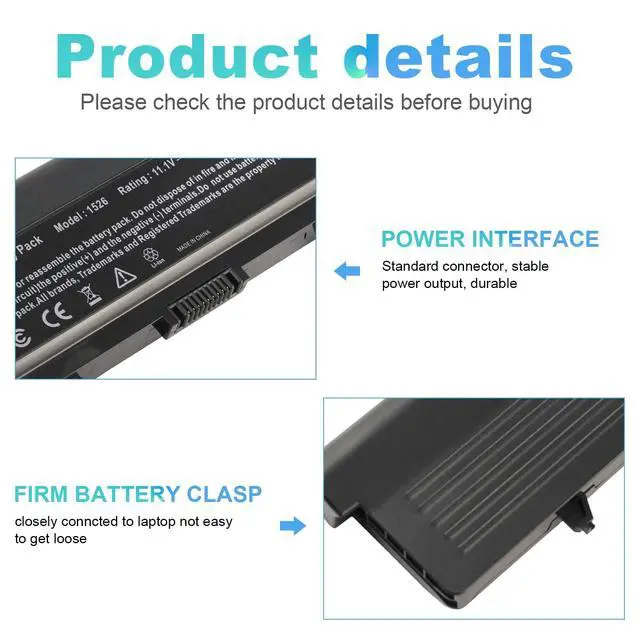 Compatible with the following listed parts numbers: For DELL 0C601H 0D608H 0GP952 0GW240 0GW252 0RN873 0RU586 0WK379 0X284G 0XR693 0XR694 0XR697 J399N 312-0625 312-0626 312-0633 312-0634 312-0763 312-0844 C601H CR693 D608H GP252 GP952 G555N 0F965N GW240 GW241 GW252 HP277 HP287 HP297 M911G P505M PD685 RN873For RU573 RU583 RU586 0XR682 HP297 RW240 UK716 WK371 WK379 WK380 WK381 WP193 X284G XR682 XR693 XR694 XR697 0C601H 0UK716 0CR693 0GP252 0GW241 0HP277 0HP287 0HP297 0M911G 0P505M 0PD685 0RU573 0RU583 0RW240 0WK371 0WK380 0WK381 0WP193 451-10478 451-10533Suitable with the following laptop models: For Dell Inspiron 1525, Inspiron 1526, Inspiron 1545, Vostro