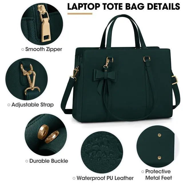 • High-quality & Durable Women Laptop BagMade of high-quality cross pattern PU leather and high-density nylon lining, this laptop bag is water-resistant, scratch-resistant, wear-resistant and anti-wrinkle. Reinforced flat bottom with 4 metal feet to protect against scratching and damage. Design with smooth zipper, sturdy handle, golden metal accessories and reinforced stitching make the laptop tote bag more durable.