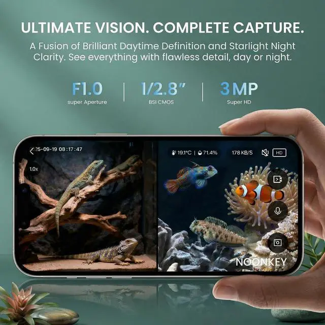 Ultra-Clear Close-Focus Camera: Captures sharp details for fish tanks, reptile terrariums, window bird feeders and home security. Provides crisp, clear footage day and night for monitoring pets and home safety ^^