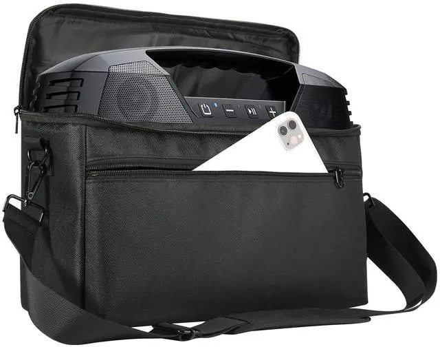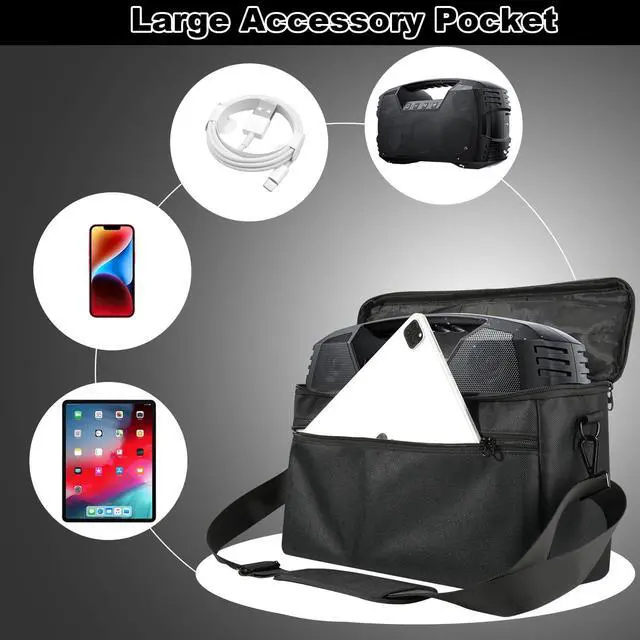 Features: Specially designed travel carrying bag for 40W 60 peak speaker, with large accessory pocket, keep the speaker well organized and protected. Durable exterior 600D nylon and interior 210D nylon, padded with 3mm thick EPE foam to keep your speaker and accessories safe during daily transportation. Comes with adjustable shoulder strap, makes this speaker easy to carry around, perfect for daily use on business trips, travel, office and more. This protective bag has a large out pocket, great for storing chargers, microphones, phones, tablets, cables and other accessories. Smooth zipper provides easy access to your speaker and accessory.