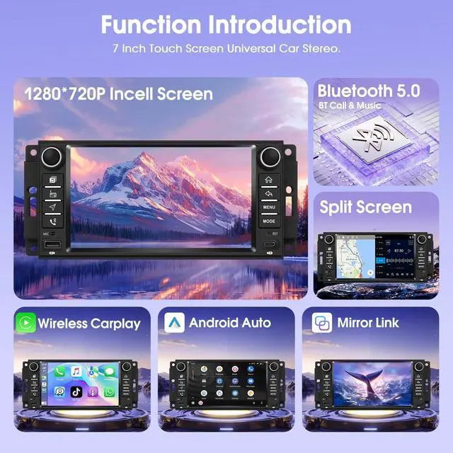^^ Bluetooth & FM/RDS RadioThis Jeep Wrangler 2010 car radio features reliable Bluetooth for stable wireless pairingstream music, make hands-free calls, and transfer files even in remote areas. Its FM/RDS radio delivers crisp sound, auto-storing preferred stations to keep you updated on music, news, and trail conditions. Elevate in-car entertainment for your 2010 Wrangler. ^^ Split Screen & Steering Wheel ControlThe split-screen function of this Jeep Wrangler 2013 car stereo lets you run two apps (navigation + music) side by side, with customizable sizes. It supports original steering wheel button learning, mapping functions to your Wranglers controlsminimizing distractions for safer off-road or highway drives in your 2013 model.