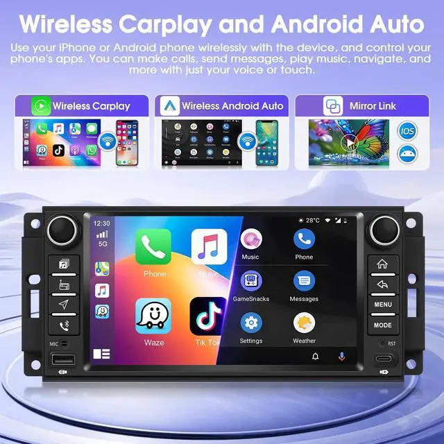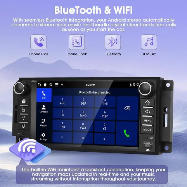 ^^ Wireless CarPlay & Android AutoTailored for the Jeep Wrangler 2015 car stereo, wireless CarPlay and Android Auto let you pair iPhones/Android devices effortlessly. Unlock calls, messages, music, and navigation via Siri/Google Assistant voice commandskeeping hands on the wheel for safer drives, whether tackling trails or city streets in your 2015 Wrangler. ^^ GPS Navigation & WIFI ConnectivityEquipped with high-precision GPS, this Jeep Wrangler 2018 multimedia player supports online/offline maps (internet for initial download), with voice guidance and real-time traffic alerts to avoid congestion. Connect to WIFI to update maps, download apps, or stream contentensuring you stay on track wherever your 2018 Wrangler takes you.