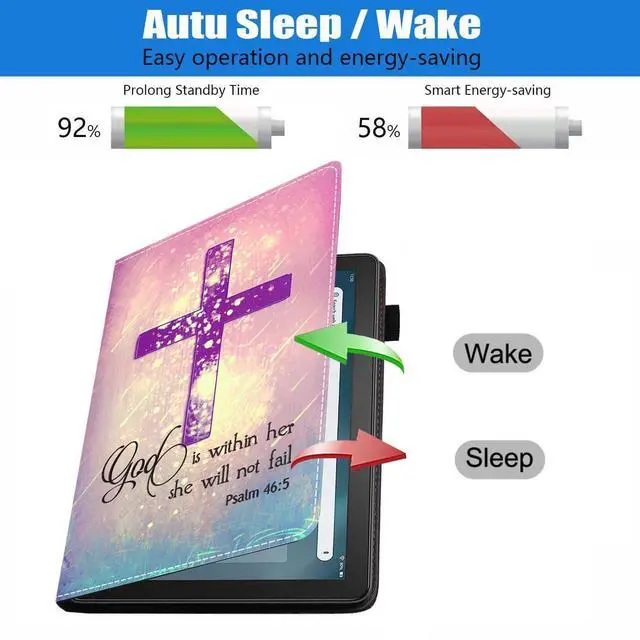 • [ Hands-Free Stand Design ] - The leather cover with fold design can make your tablet stand on the cover,The cover linning adopted anti-slip material to give your tablet a stable support,you can freely adjust the angel for a comforable viewing. Magnetic smart cover supports fast response auto sleep/wake function.