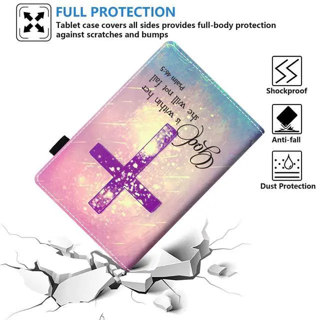 Case for Kindle Fire HD 10 & 10 Plus Tablet 10.1" (13th/11th Generation, 2023/2021 Release), Slim PU Leather Stand Folio Cover with Auto Wake Sleep, Christian Cross Quote Bible Verse Psalm 46:5