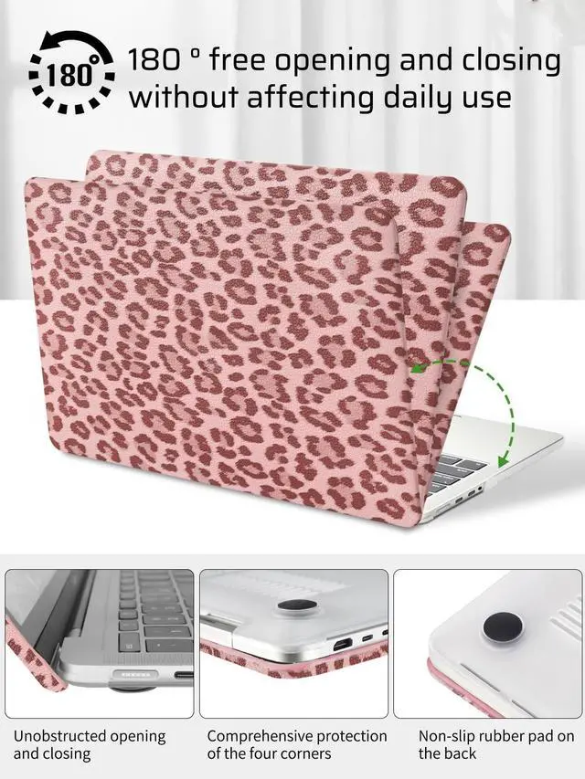STYLISH DESIGNS: Adopt unique printing technology. Brightly colored leopard grain printed on PVC leather design. It feels fine and comfortable to the touch and the creamy texture of the case makes your Macbook more attractive. You can choose a variety of fashionable colors for your laptop such as black grey, beige, brown, pink, light brown, khaki. Choosing our leopard grain printed laptop leather case is the best choice ^^