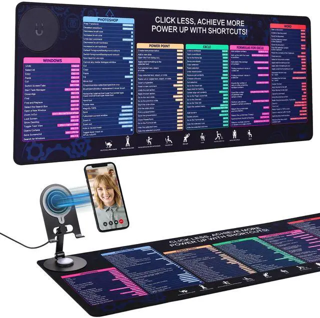 Office Powerhouse: Combines a shortcuts mousepad, Wireless charger, and adjustable phone holder into one sleek, space-saving desk setup. Eliminate clutter and boost your productivity instantly. ^^ Innovative Magnetic Assembly Phone