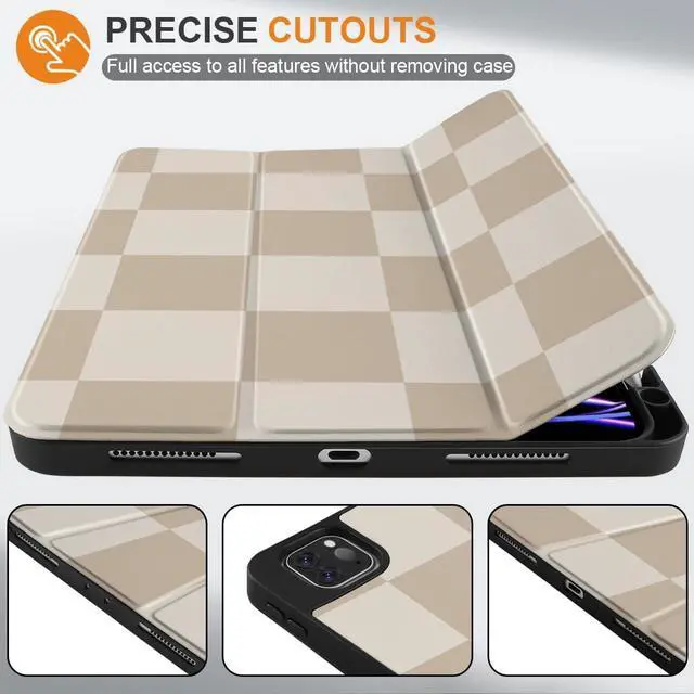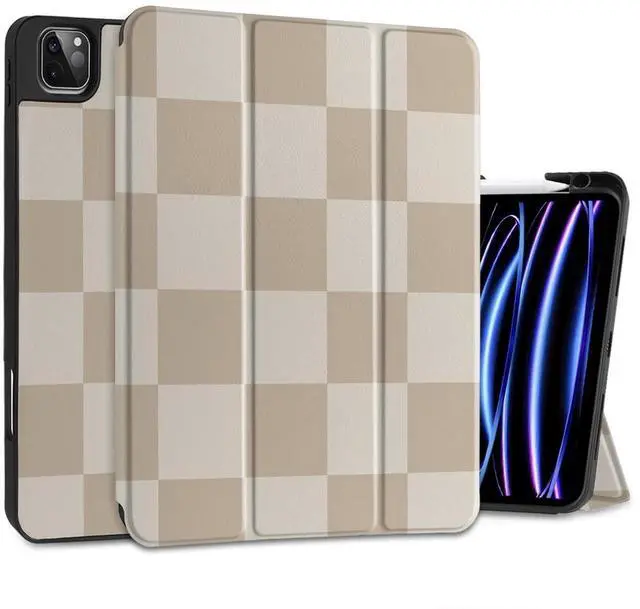DONGKE Case for iPad Pro 12.9 inch 6th Generation 2022, Built-in Pencil Holder + Trifold Stand + Auto Wake/Sleep + Protective Cover for iPad Pro 12.9 5th/4th/3rd Gen- Beige Chessboard