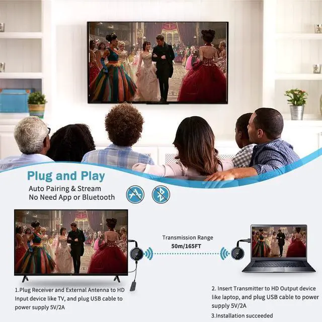 ^^ 165FT/50M WIRELESS TRANSMISSIONEnjoy a strong, stable signal up to 165ft/50m. Cast across roomsideal for home, office, or surveillance setups. ^^ WIDE COMPATIBILITYLightweight and portable for business or travel. Works with laptops, PCs, cameras, Blu-ray players, set-top boxes, tablets, and more. ^^ MULTIPLE TRANSMITTERS & SCREEN MIRRORPair 1 receiver with up to 8 transmitters. Mirror from Android, i-Phone, i-Pad, or tablet using Miracast, DLNA, or AirPlay. Customize settings and switch modes easily. ^^ PACKING INCLUDED & RELIABLE SERVICEIncludes transmitter, receiver, HDMI adapters, antenna cable, USB-C cable, and manual.