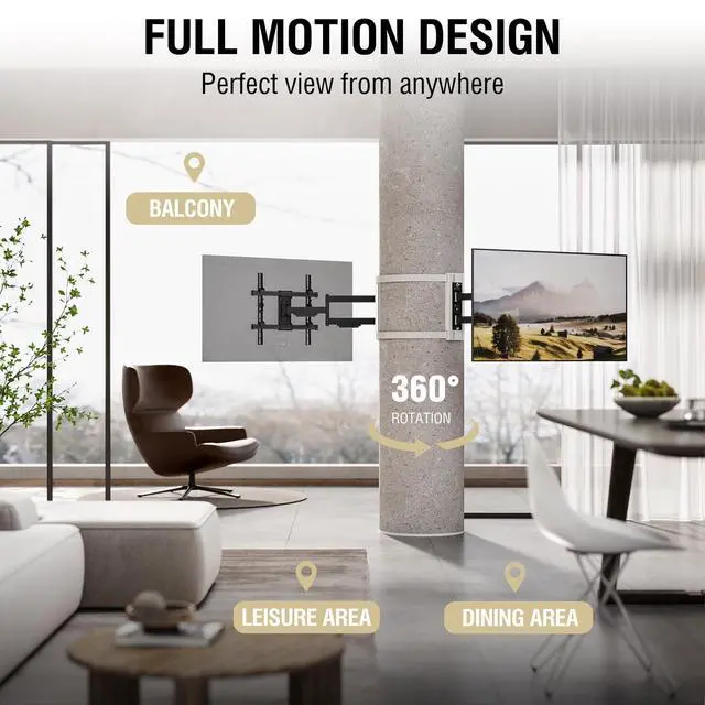 Large Pillar Compatibility: This mount is perfectly suited for Large size pillars, with a diameter range of 8 (30cm) to 48 ( 1.2 m) equivalent to a circumference of 38 (97cm) to 150 ( 3.8 m). This mount is designed to fit pillar shapes including circular, rectangular, square, octagonal columns, and more. Make your TV dreams come true! ^^ Versatile Tv Compatibility - This TV mount supports TV sizes from 32" to 70" and can hold up to 80 lbs. It is compatible with VESA standards including 200x200, 300x300, 400x300, 400x200, and 400x400. It's time to unleash the full potential of your TV with our reliable mount. ^^ All Inclusive