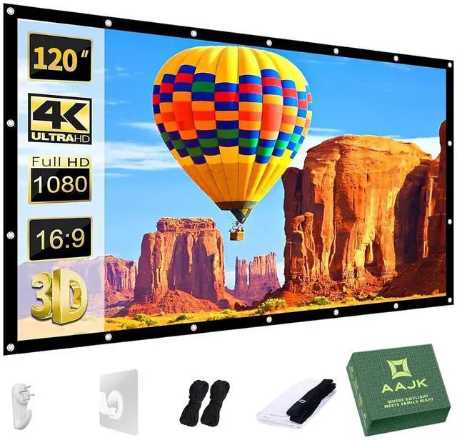 Multi-Scene Usage: Whether you're camping in the wilderness or hosting a backyard movie night, our cloth projector screen is your ticket to outdoor entertainment. It's also ideal for indoor movie rooms, transforming any space into a private cinema ^^ Projector Selection AdviceThe 120 inch projector screen is designed with a diagonal 16:9 ratio and a wide viewing angle of 160, making it very suitable for medium to long projection projectors. Use a high brightness projector during the day and an affordable projector at night to achieve 4K clarity and optimal viewing experience.