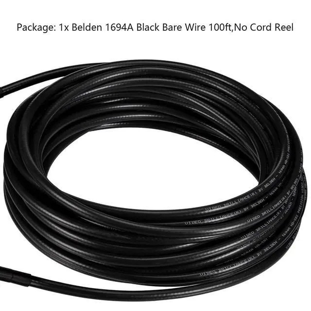 75 Ohm Belden 1694A Low Loss Serial Digital Coaxial Cable Bare Wire 100ft Black ^^