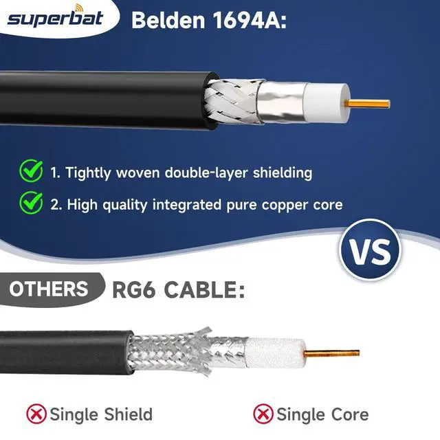 Type: Belden 1694A; 18 AWG^^Standard Definition SD-SDI (270 Mbps, ST 259) HD standard HD-SDI ( 1.483 Gbps, ST 292)3G-SDI ( 2.97 Gbps, ST 424) 6G-SDI ( 5.94 Gbps, ST 2081) 12G-SDI ( 11.88 Gbps, ST 2083).