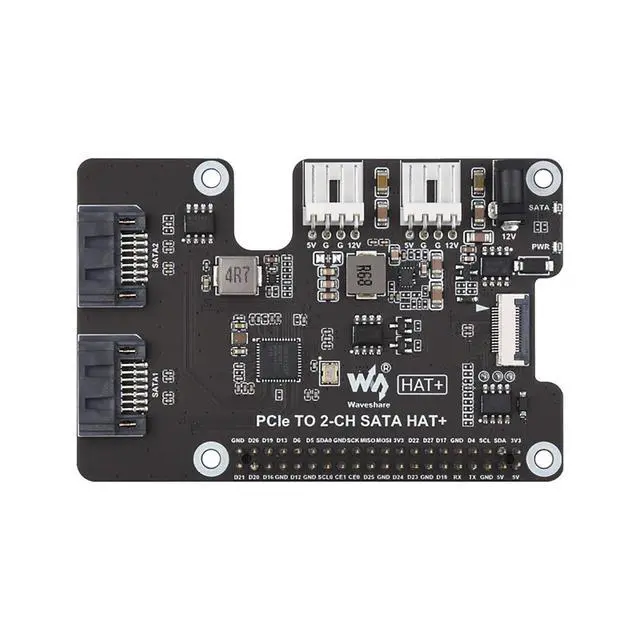 Product Info Storage: The onboard EEPROM stores the HAT+ identity and technical details, ensuring compatibility with the Rasp-berry Pi HAT+ standard and auto-recognition on boot. ^^ Compact, Reliable SATA Expansion for Raspberry Pi NAS Projects; Perfect for building your own Rasp-berry Pi NAS, media server, or data backup systemthis 2-Port SATA PCIe adapter is compact, efficient, and ideal for DIY storage solutions.